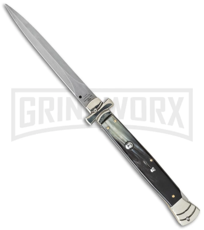 A.G.A. Campolin 11″ Maltese Cross Stiletto Dark Horn Automatic Knife – Dagger