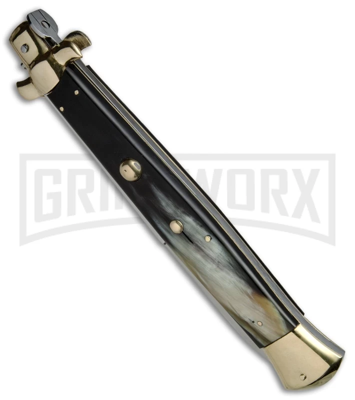 A.G.A. Campolin 18″ Brazilian Horn/Brass Italian Stiletto Auto Knife – Bayonet