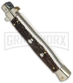 AGA Campolin 11″ Italian Picklock Stag Horn Automatic Knife – Bayonet 2018