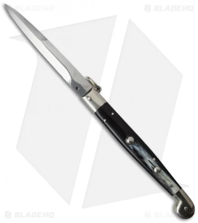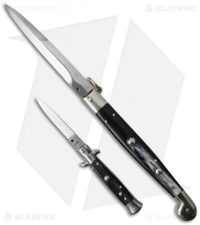 AGA Campolin 12″ Sicilian Ring Pull Automatic Knife Dark Horn (5.5″ Satin Bayo)