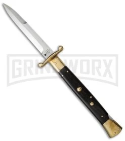 AGA Campolin 13″ Stiletto Brass Swinguard Ebony Wood Automatic Knife – Bayonet