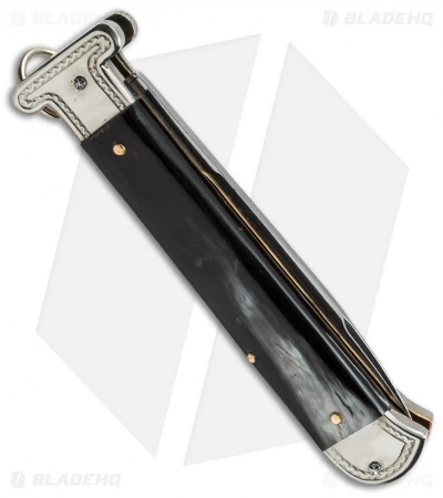 AGA Campolin 9″ Francese Ring Pull Automatic Knife Dark Horn (3.7″ Satin Flat)