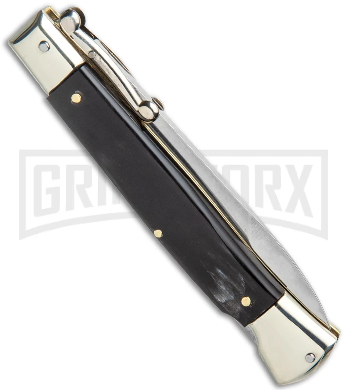 AGA Campolin 9″ Italian Stiletto Swinguard Dark Horn Automatic Knife – Bayonet