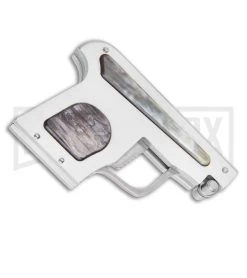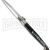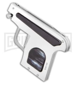 Add a unique novelty design to your Italian auto collection with the Gun Knife Automatic from AGA Campolin. This model features a satin finished handle with rich dark horn inlays. The stainless steel blade fires into the open position with a trigger activated firing button. The blade locks up solid with a pull-back release. Pick up a collectible Italian automatic with AGA Campolin.