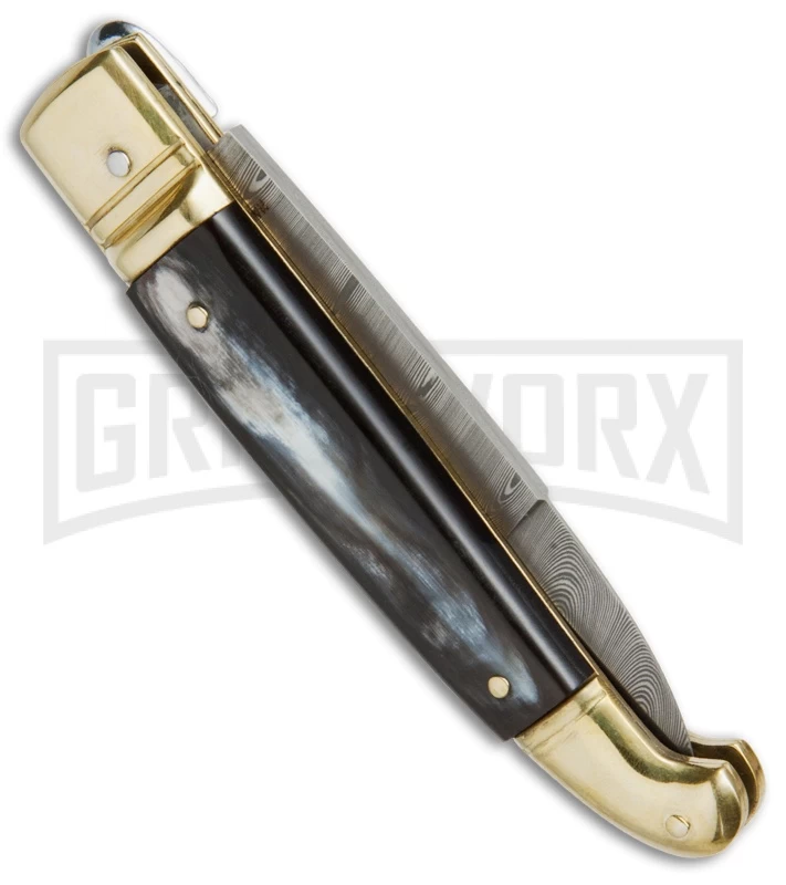 AGA Campolin Dark Horn Brass Lever Lock Automatic Knife – Damascus Plain